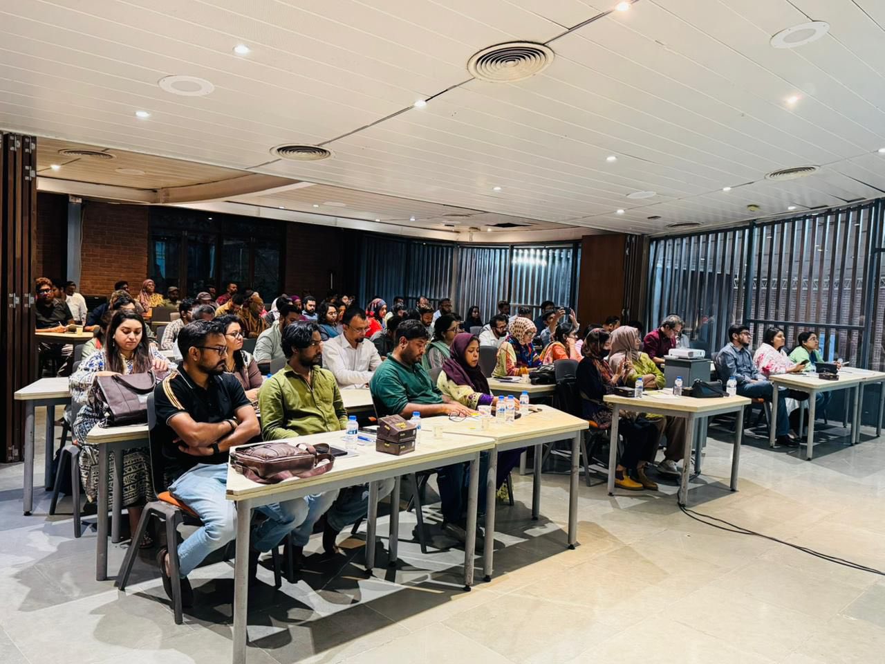 কোর্সের আলোচনায় বিশেষ গুরুত্ব দেওয়া হয় গার্মেন্টস কারখানায় তাপীয় পরিবেশে স্বস্তি (Thermal Comfort), প্রাকৃতিক বায়ু চলাচল (Natural Ventilation), শক্তি-সাশ্রয়ী কুলিং কৌশল (Energy-efficient Cooling Strategy), ছায়া ব্যবস্থা (Shading Strategy), বিল্ডিং অরিয়েন্টেশন এবং ইনডোর পরিবেশের মান উন্নয়নে ডিজাইন সমাধানের ওপর। এছাড়াও বাস্তব প্রকল্প বিশ্লেষণ, আন্তর্জাতিক মানদণ্ড এবং শিল্পখাতভিত্তিক নকশা নির্দেশনা তুলে ধরা হয়। অংশগ্রহণকারীদের সক্রিয় অংশগ্রহণে প্রশ্নোত্তর ও মতবিনিময় পর্ব সেশনটিকে আরও ফলপ্রসূ করে তোলে।
