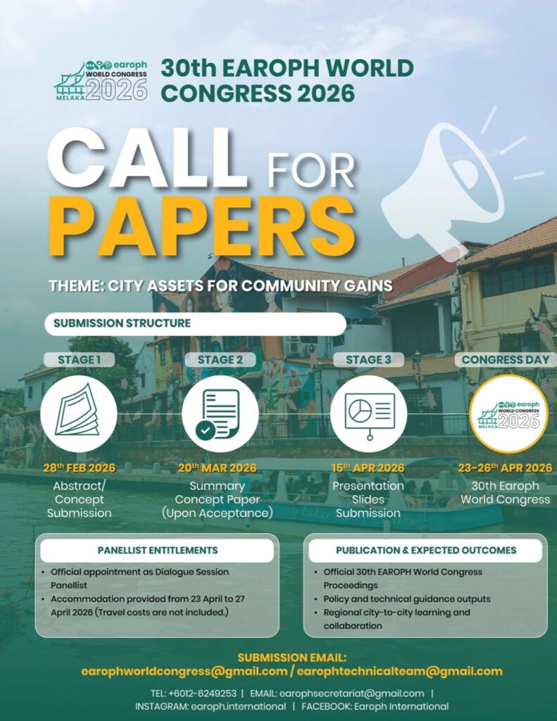 The Eastern Regional Organisation for Planning and Human Settlements (EAROPH) is now inviting papers & concept papers for the Dialogue Sessions of the 30th EAROPH World Congress 2026, to be […]
