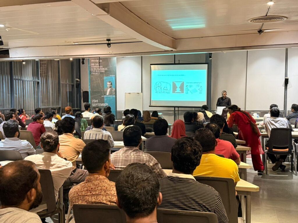 গত ২৩ সেপ্টেম্বর ২০২৫, মঙ্গলবার, বিকেল ৫:৩০ টা থেকে রাত ৯:৩০ টা পর্যন্ত ইনস্টিটিউট অব আর্কিটেক্টস বাংলাদেশ (বাস্থই) এর বার্জার সেমিনার হলে অনুষ্ঠিত হয় “IAB CAD Standards & Deliverables for Building Project” শীর্ষক একটি গুরুত্বপূর্ণ CPD (Continuing Professional Development) সেশন। সেশনে নিবন্ধিত স্থপতিদের মধ্য থেকে মোট ৯১ জন সদস্য অংশগ্রহণ করেন। অংশগ্রহণকারীরা সরাসরি অভিজ্ঞতা বিনিময় এবং সে বিষয়ে বাস্তব উদাহরণসহ ধারণা লাভ করেন।
