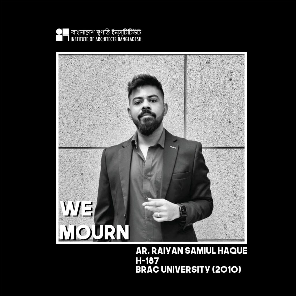 অত্যন্ত দু:খের সাথে জানানো যাচ্ছে যে, বাস্থই সদস্য স্থপতি রাইয়ান সামিউল হক (এইচ-১৮৭) আজ ৫ জানুয়ারি ২০২৬ তারিখ, সোমবার, সকাল ৭:০০টায় ইউনাইটেড হাসপাতাল, ঢাকাতে চিকিৎসাধীন অবস্থায় ইন্তেকাল করেন (ইন্না লিল্লাহি ওয়া ইন্না ইলাইহি রাজিউন)। মরহুম স্থপতি ২০১০ সালে ব্র্যাক বিশ্ববিদ্যালয় হতে স্নাতক ডিগ্রী অর্জন করেন।
