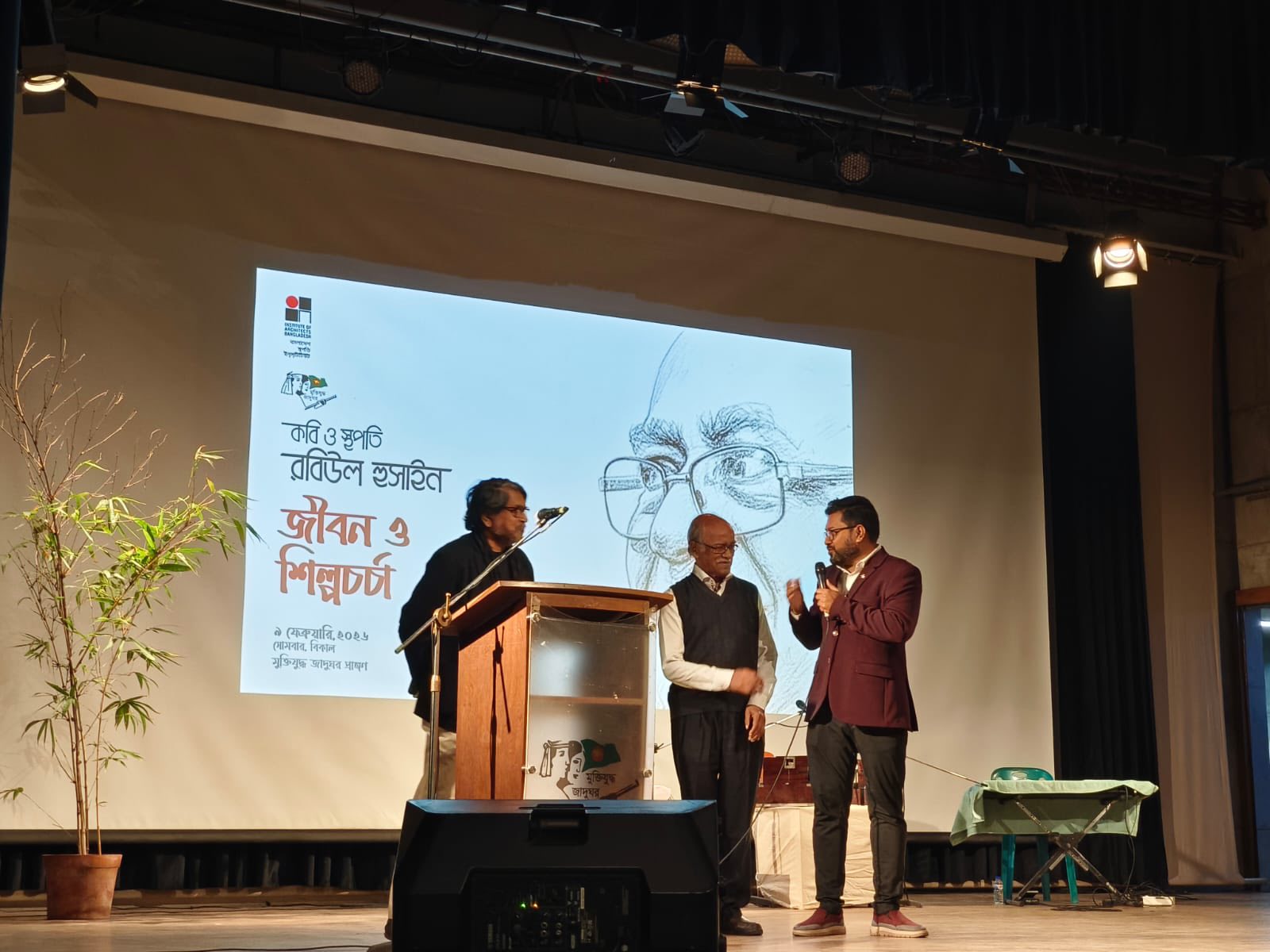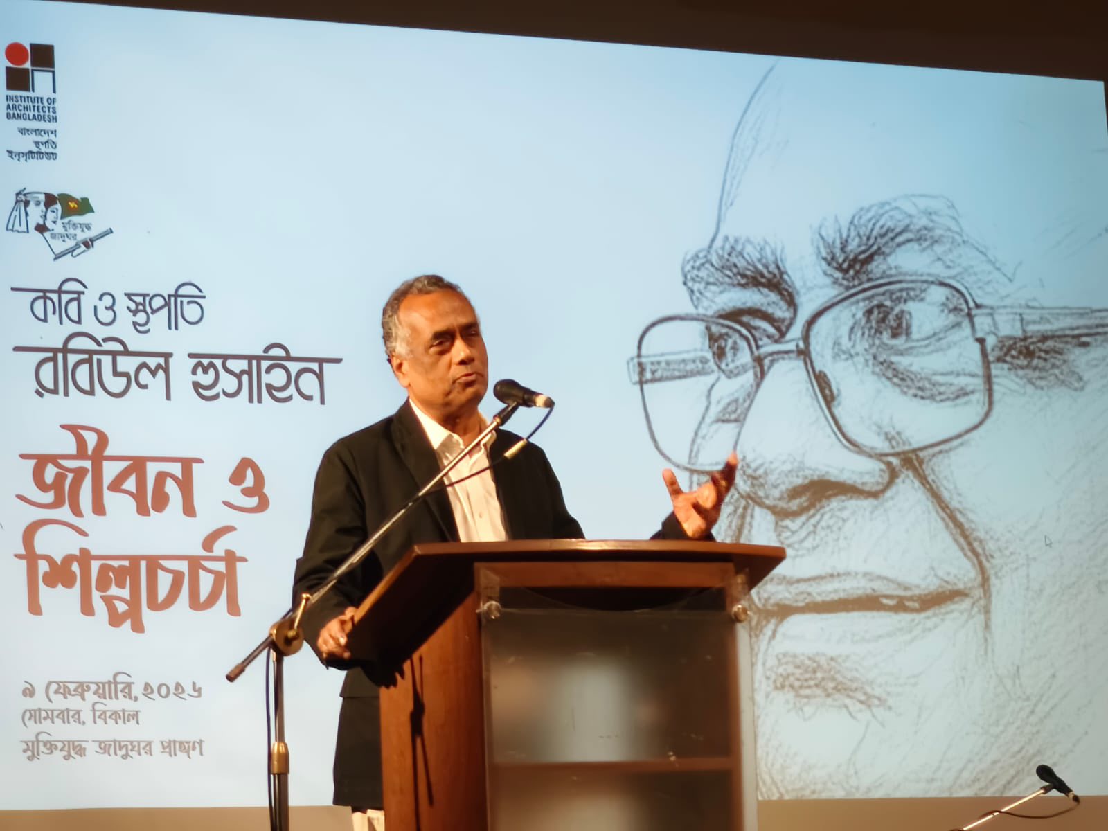 কবি ও স্থপতি রবিউল হুসাইন—এক অনন্য সৃজনশীল সত্তা, যাঁর জীবন ও শিল্পচর্চা আমাদের স্থাপত্য ও সাহিত্যচিন্তাকে সমৃদ্ধ করেছে। বাংলাদেশ স্থপতি ইন্স্টিটিউট (বাস্থই) ও বাংলাদেশ মুক্তিযুদ্ধ জাদুঘরের যৌথ উদ্যোগে ৯ই ফেব্রুয়ারি ২০২৬, সোমবার সন্ধ্যা ৬টা থেকে রাত ৯টা পর্যন্ত মুক্তিযুদ্ধ জাদুঘর প্রাঙ্গণে এক মনোজ্ঞ আয়োজনের মাধ্যমে কবি ও স্থপতি রবিউল হুসাইন-এর জীবন ও শিল্পচর্চা বিষয়ক প্রদর্শনী ও স্মরণসভা অনুষ্ঠিত হয়।
