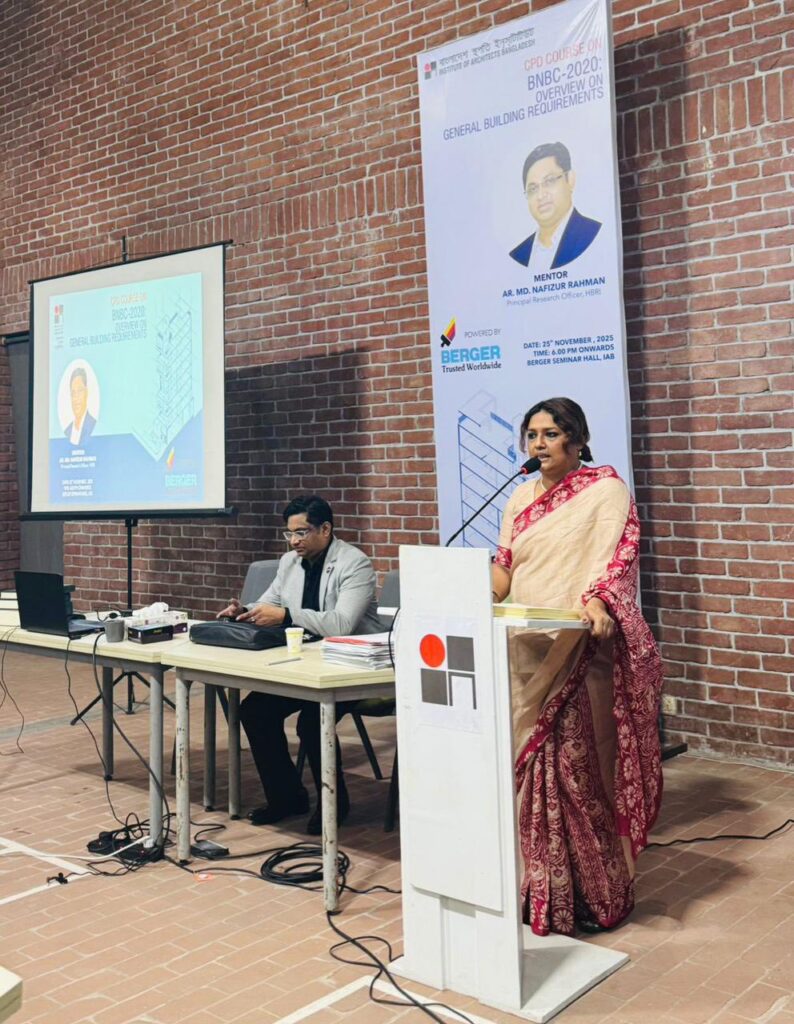 স্থাপত্য পেশাচর্চার উন্নয়নে গত ২৫ নভেম্বর ২০২৫, মঙ্গলবার, সন্ধ্যা ৬:০০ টা থেকে ৯:০০ টা পর্যন্ত ইনস্টিটিউট অব আর্কিটেক্টস বাংলাদেশ (বাস্থই) এর কার্যালয়ে অনুষ্ঠিত হয় “BNBC 2020: Overview on General Building Requirements” শীর্ষক একটি গুরুত্বপূর্ণ CPD (Continuing Professional Development) সেশন। এটি এই বিষয়ের উপর তৃতীয়বারের মতো অনুষ্ঠিত একটি CPD। প্রথমবারের ৮০ জন ও দ্বিতীয়বারেও ৮০ জন সদস্য নিয়ে অনুষ্ঠানের পরে এবার ১৫৩ জন রেজিস্ট্রেশন করা সদস্যদের মধ্য থেকে ১৩৮ জন সদস্য অংশগ্রহণ করেন।